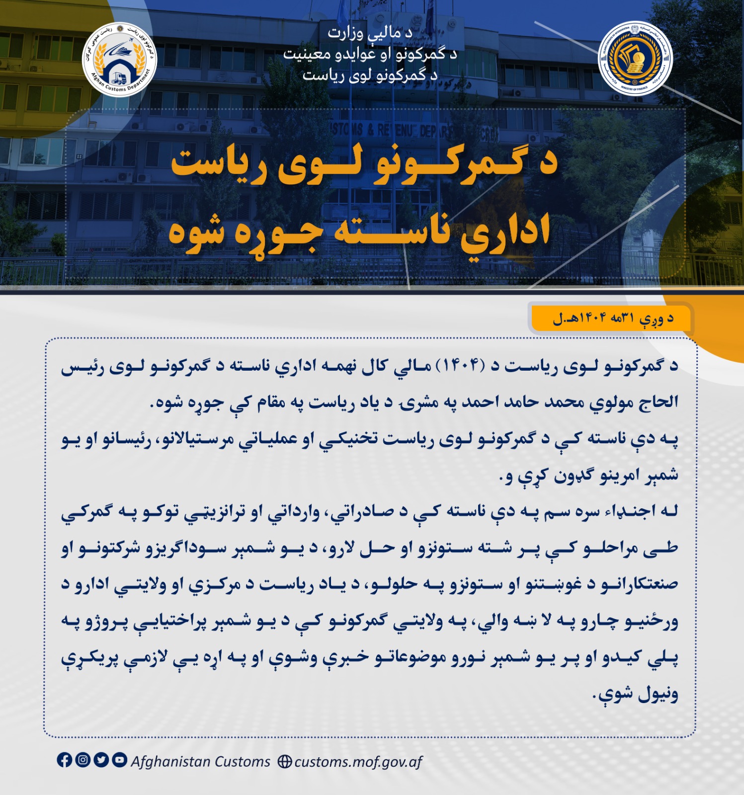 د ګمرکونو لوی ریاست اداري ناسته جوړه شوه